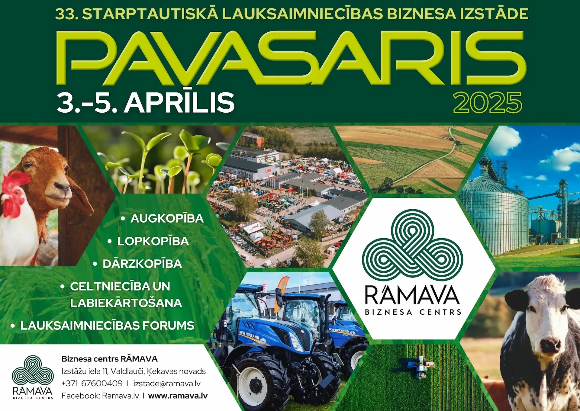 Ar prieku paziņojam, ka šogad piedalīsimies Starptautiskajā Lauksaimniecības biznesa izstādē “Pavasaris 2025”, kas norisināsies 3.–5. aprīlī Rāmavā! Aicinām ikvienu apmeklēt mūsu stendu, kur atbildēsim uz jūsu jautājumiem, pastāstīsim par mūsu uzņēmumu, tā mērķiem un piedāvājumiem. Šī būs lieliska iespēja klātienē iepazīties ar mums un mūsu pakalpojumiem, kā arī apspriest sadarbības iespējas. Tiekamies izstādē!